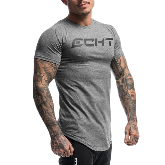 Mens Gyms t shirt Fitness Bodybuilding T-Shirts Printed Casual Fashion Male Short sleeve Cotton Clothing Summer Brand Tee Tops
