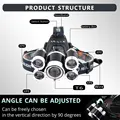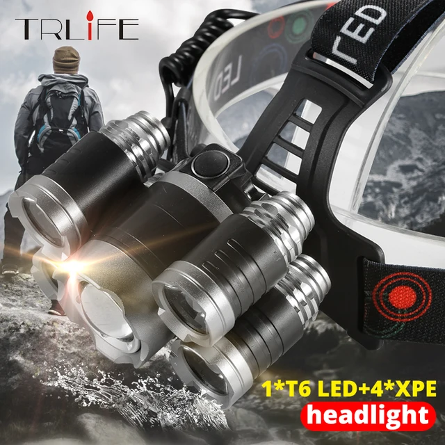 Most Powerful LED Headlight headlamp 5LED T6 Head Lamp Power Flashlight Torch head light 18650 battery Best For Camping, fishing