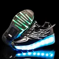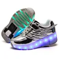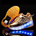 Children One Two Wheels Luminous Glowing Sneakers Gold Pink Led Light Roller Skate Shoes Kids Led Shoes Boys Girls USB Charging