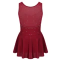 Kids Sparkly Inlaid Rhinestone Tulle Ballet Gymnastics Leotard Girls Figure Skating Dress Lyrical Contemporary Dance Costumes